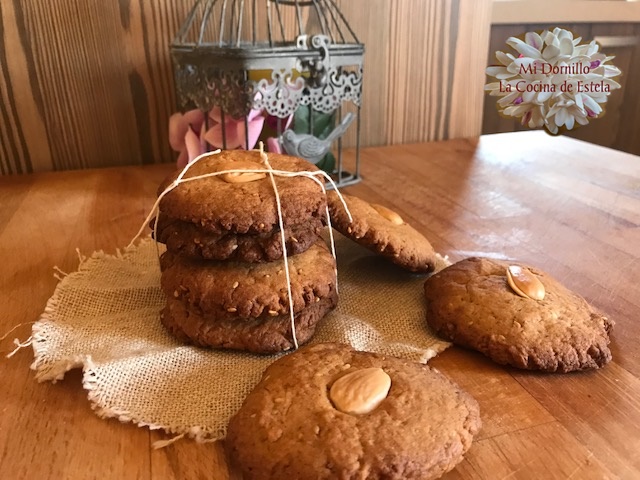 Ponemos una bandeja de horno forrada con papel y vamos haciendo bolas con la masa y aplastandola formado nuestras tortas, no muy grandes, poniéndole una almendra a cada torta.