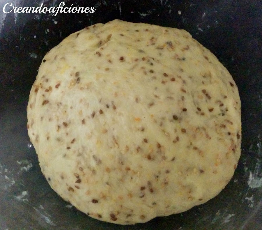 Hacemos una bola y lo dejamos reposar con un paño por encima, hasta que la masa doble su tamaño, una hora aproximadamente.