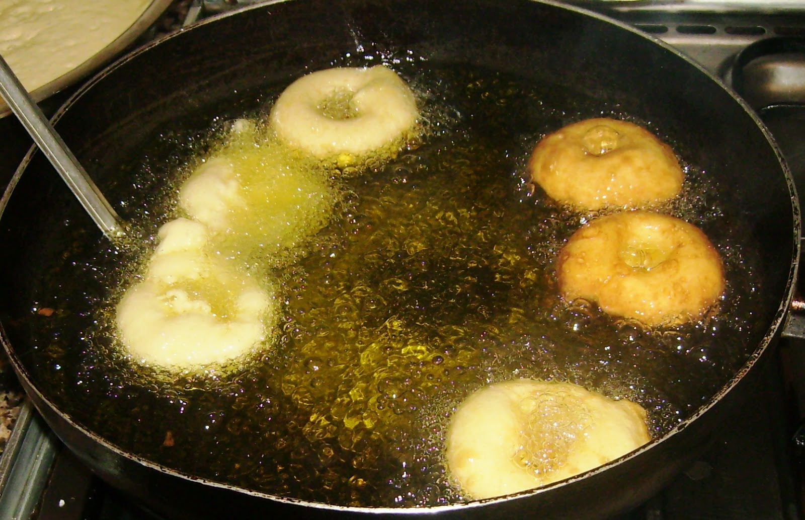 Cuando la masa ha crecido, ponemos una sartén con abundante aceite, cuando esté bien caliente freir las tortas con un molde especial o con una cuchara.