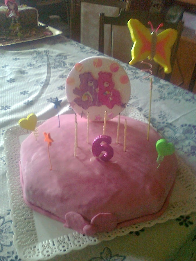 Torta Octogonal esponjosa de chocolate con relleno de dulce de leche, decorada con coco de colores y golosinas motivo osito cariñosito (mi primer experiencia perdón!)