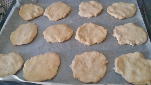 - Las bolas las aplastamos con las manos y extendemos dándole forma de platillo.