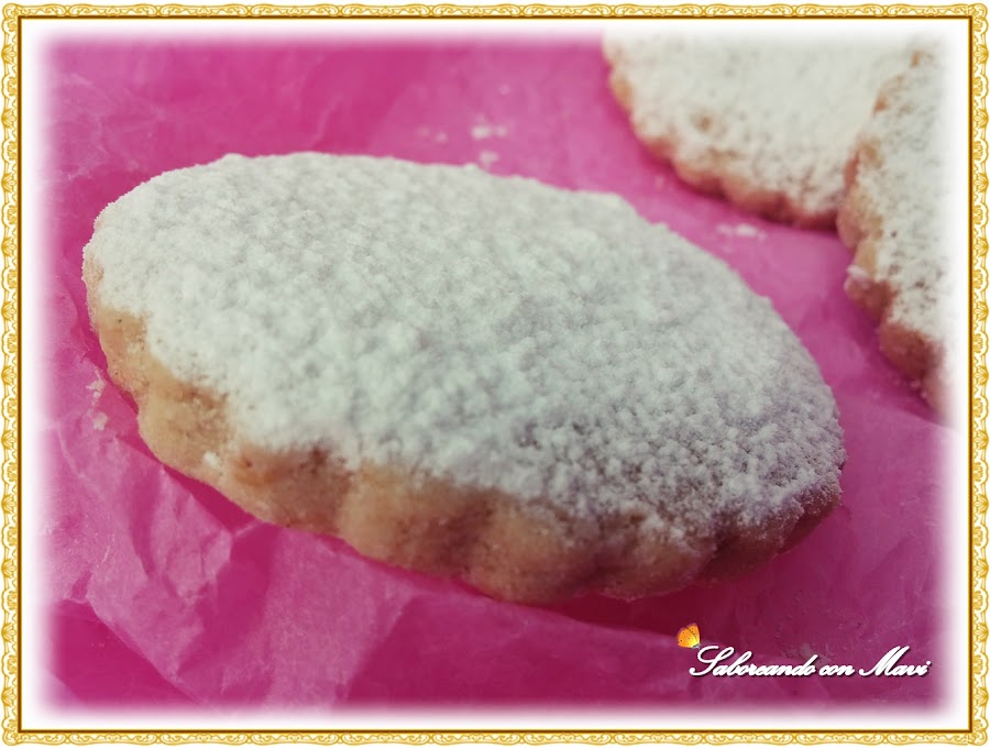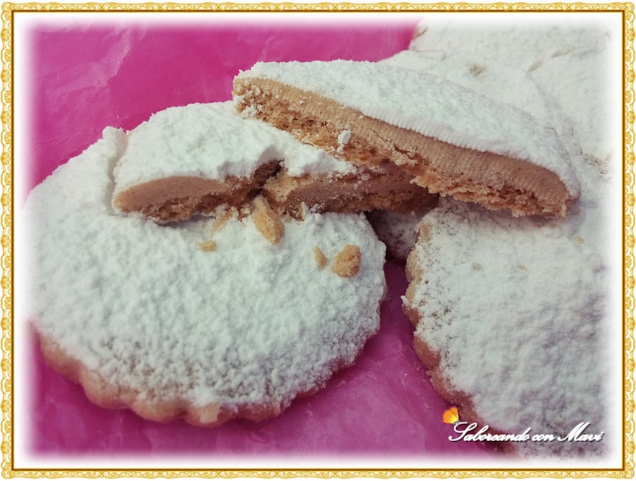 Ay por dios que pecadooo!!! No se puede parar una vez que las pruebas. Quedan bastante tiernas por dentro si le pillas el punto, mirad el corte hecho con el cuchillo como aplasta algo el polvorón. Para no pecar demasiado la mitad de ellas las espolvoree con anti humedad sin azúcar y os aseguro que no se nota la diferencia y sin embargo no lo absorbe la torta.