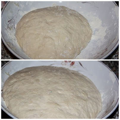 Amasamos bien hasta obtener una masa (debe quedar con una textura pegajosa). Formamos una bola y la dejamos reposar hasta que doble su volumen.
