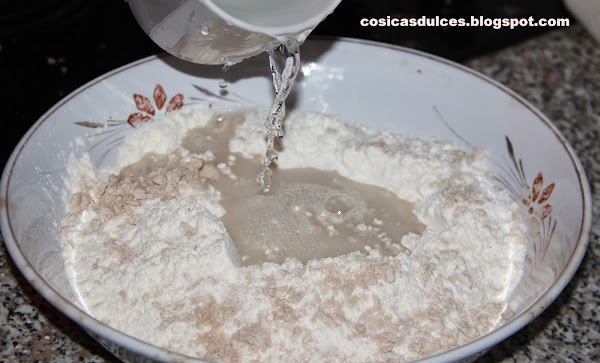Hacemos un hueco en el centro y vertemos en él el agua templada.