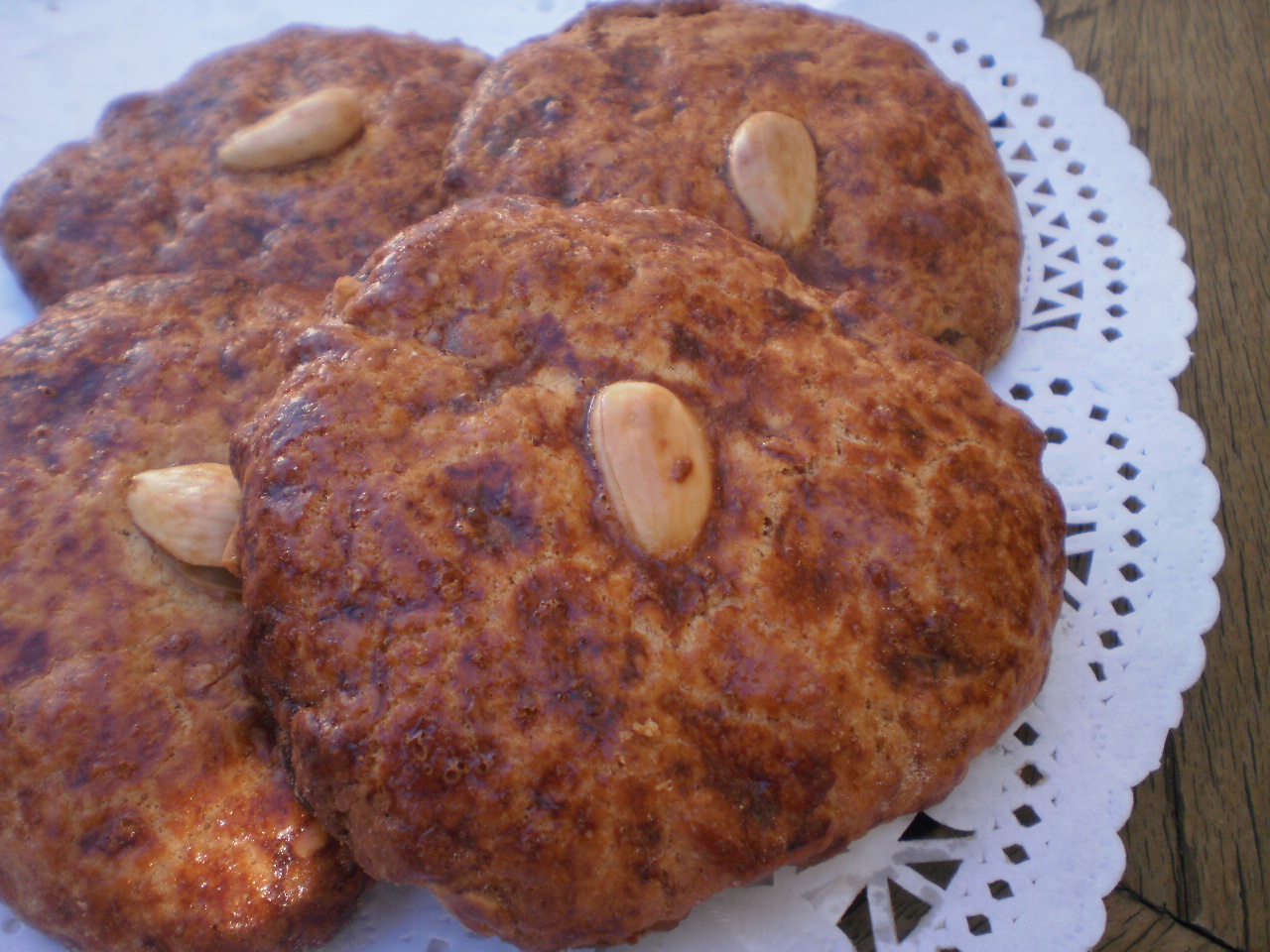 Pintarlas con huevo batido y echar azúcar por lo alto (esto último lo omití), colocando una almendra pelada (cruda, sin tostar), en el centro.
