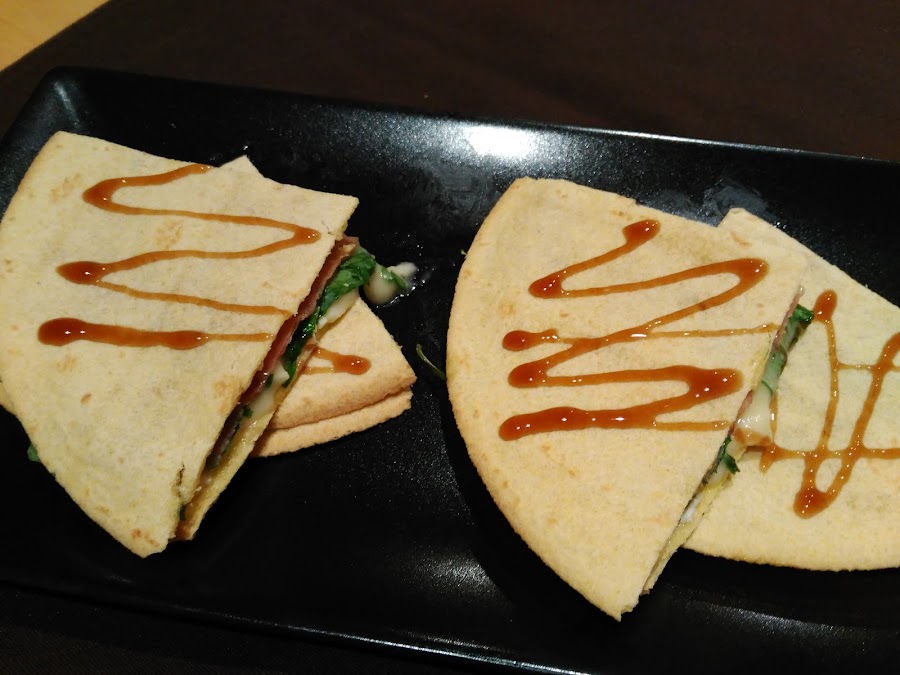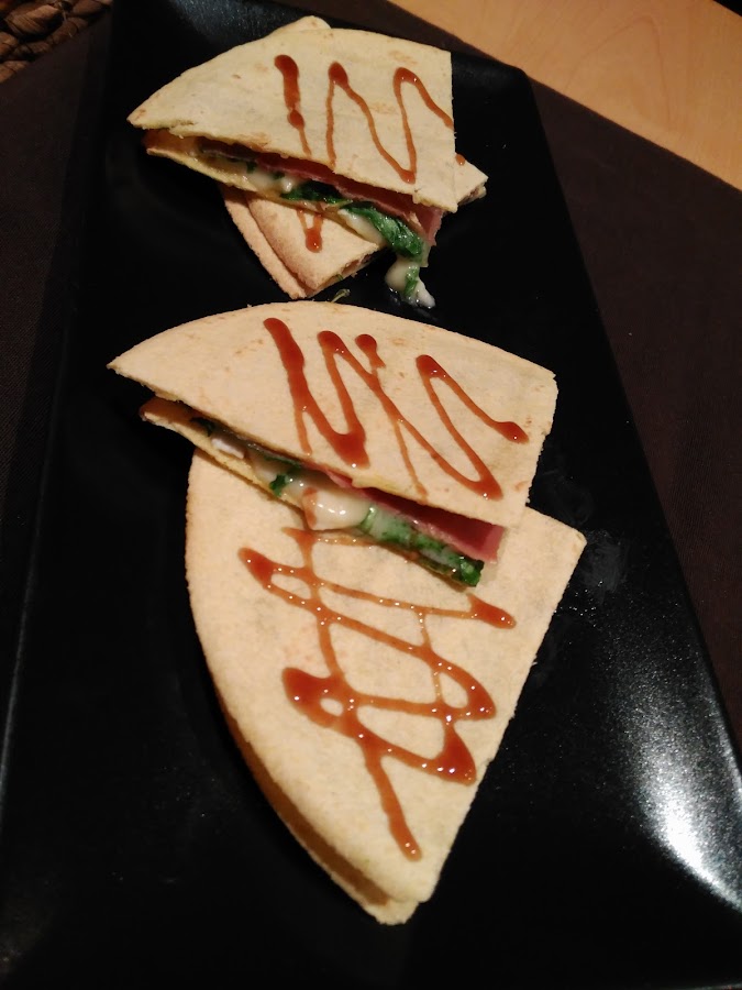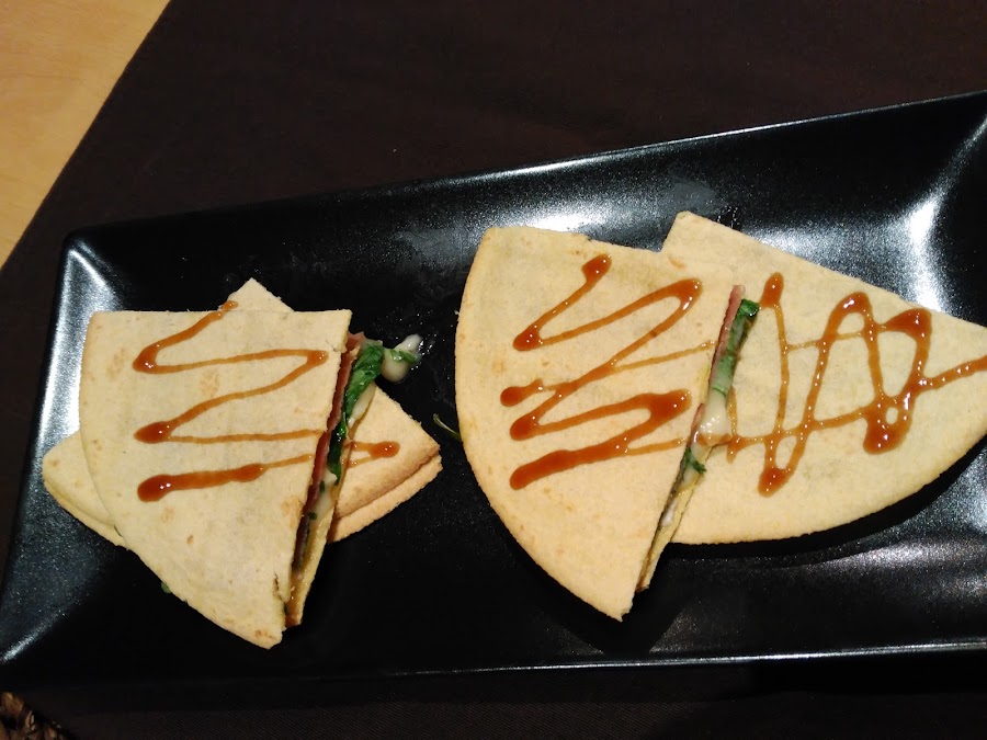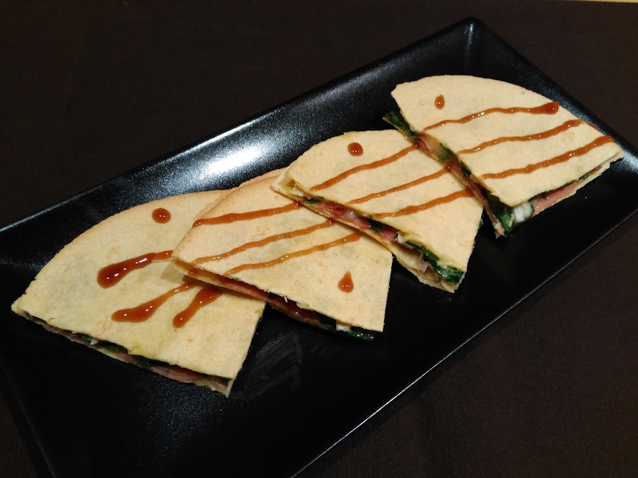- Cortar cada tortilla en 4 trozos y servir con un chorrito de crema balsámica.