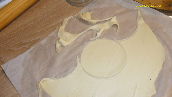 Lo primero extendemos la masa de hojaldre junto con el papel que viene adjunto y estiramos hasta verlas muy delgada.