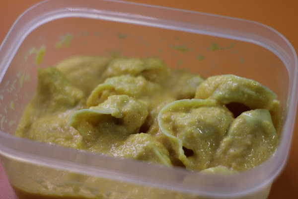 Una vez hecha la mezcla se coloca sobre los tortellini ya cocidos y listo. Podéis espolvorear un poco de queso grana padano (o el que más os guste) por encima.