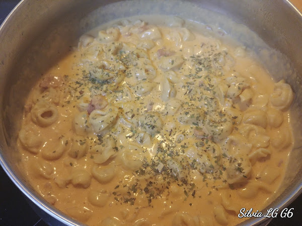 Por último añadimos los tortellinis, mezclamos todo y añadimos orégano al gusto.