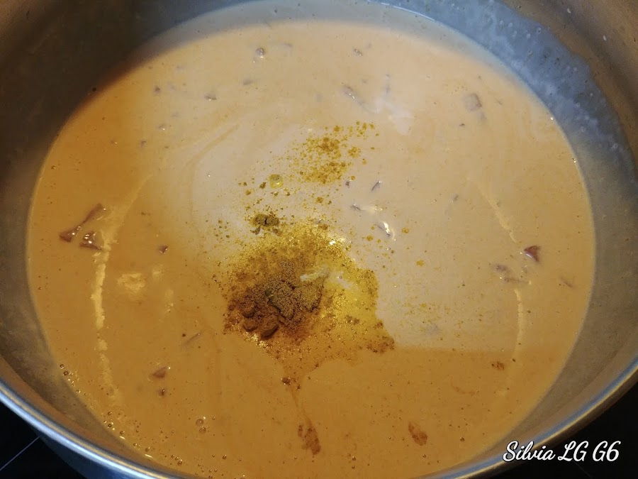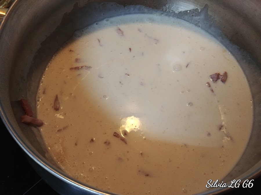 Cuando empiece a dorarse, añadimos la nata (crema de leche).
