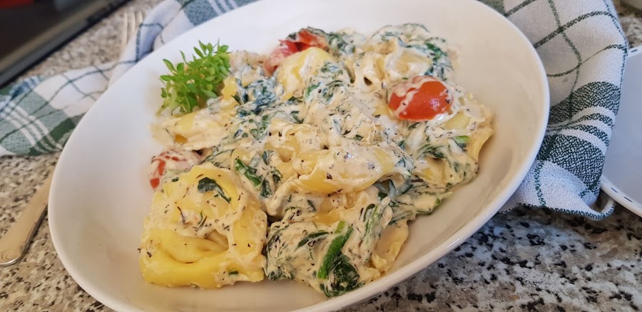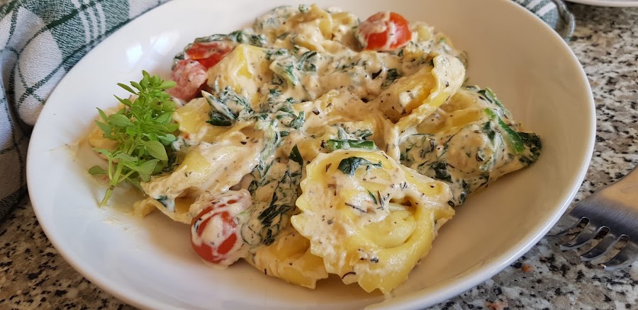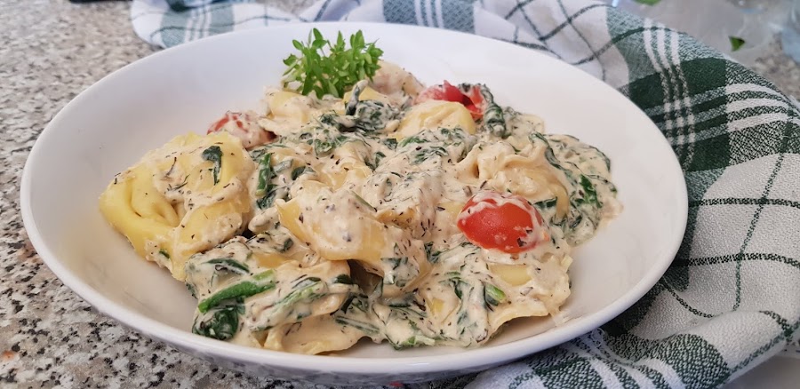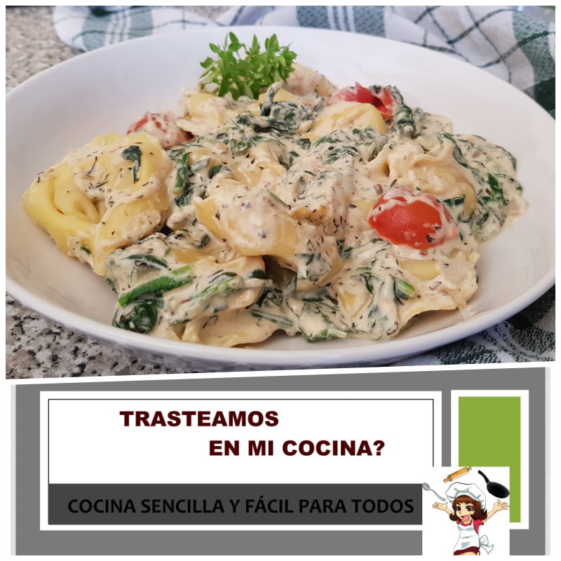 TORTELLINIS en SALSA con TOMATE y ESPINACAS