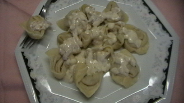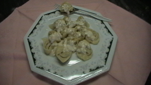 Hoy los servi con una salsa carbonara...... dorar cebollita picada pequeña, unas tiritas finitas de panceta curada y nata (crema de leche) liquida de cocinar....... y listos para degustar.....