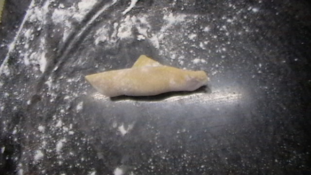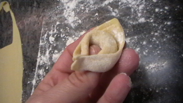 Cogemos con las manos, ponemos el pulgar en la barriguita del tortellini, y los bracitos los doblamos hacia al uña y unimos.......