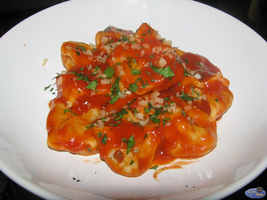 La primera vez que hago pasta fresca y bueno,al no tener máquina para estirarla y cortarla me ha quedado....así así.Pero bueno,creo que con un poco más de práctica,como casi todo en la cocina,conseguiré hacerlo mucho mejor y más rápido.De momento voy a compartir vosotros estos tortellinni