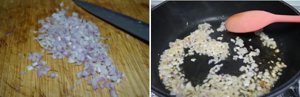 Picamos la cebolla pequeñita, ponemos una sartén con un poco de aceite y doramos la cebolla.