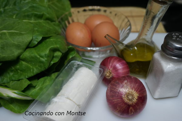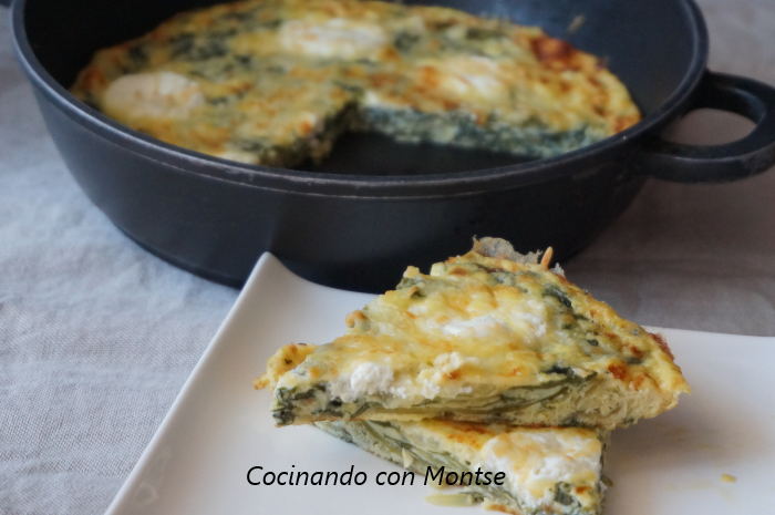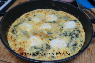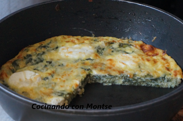 En esta ocasión la tortilla es de acelgas con queso de cabra, una combinación buenísima. La he preparado primero en el fuego con muy poco aceite y la he terminado de hacer en el horno para que se haga el huevo y el queso.