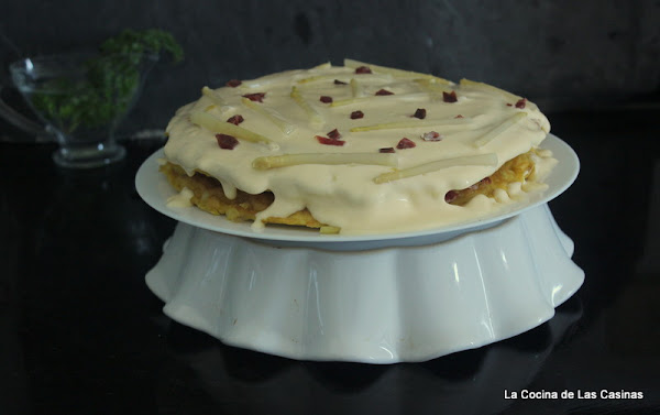 Hace más de 3 años que te traje esta receta. ByJose la ha vuelto a preparar este fin de semana, por lo que me decidí a volver a postearla porque a mí me chifla y hay mucha gente que no la vió en su momento. Se trata de hacer dos tortillas de patata con/ sin cebolla y adornarla un poco. Es un plato riquísimo, muy fresco y que gusta a todo el mundo.