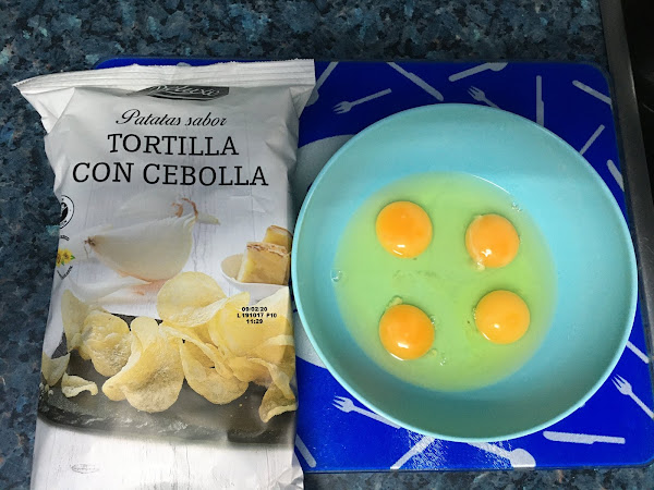 200 gr de patatas fritas de bolsa.( yo he usado unas que había en lidl con sabor a tortilla de patata pero puede ser de las normales).