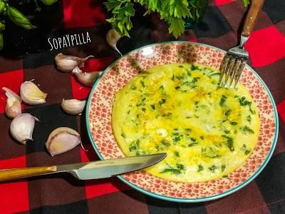 – Batir los huevos y mezclarlos con la leche. Añadir sal, los ajos y el perejil picados.