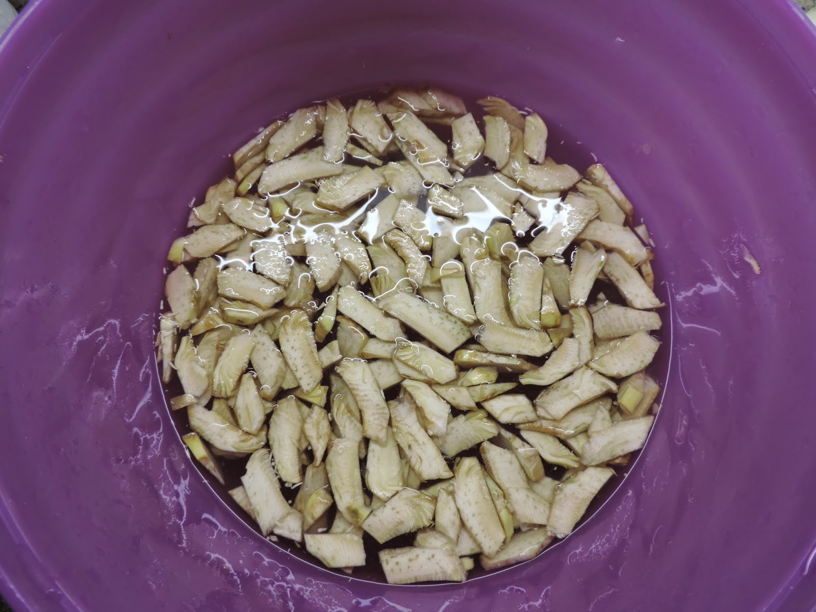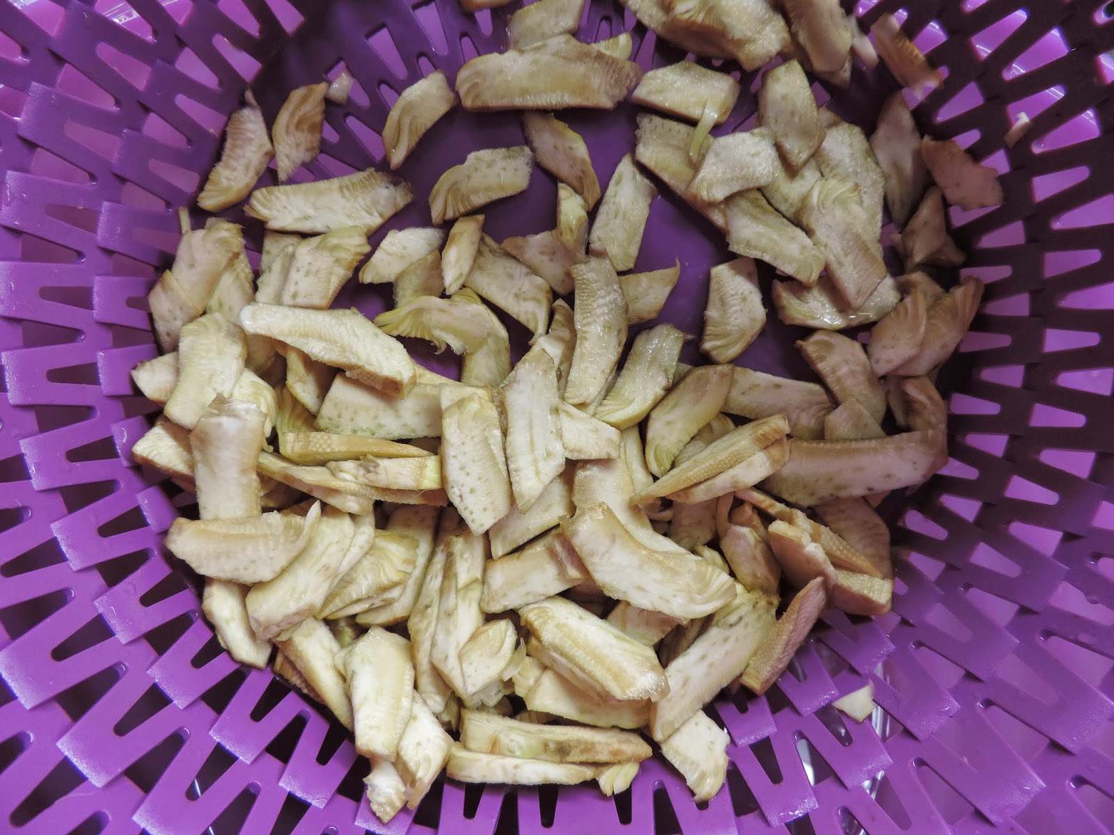 Escurrimos el agua con el zumo y las enjuagamos bien, para que no tengan gusto a limón, escurrir bien.