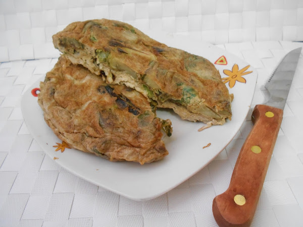 lista nuestra tortilla de alcahofas y ajos tiernos.