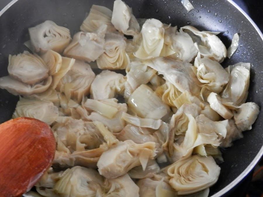 Una vez el aceite esté caliente, echamos las alcachofas y salteamos hasta que estén doraditas.