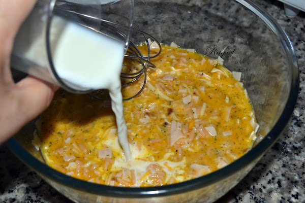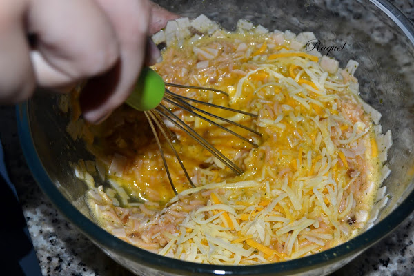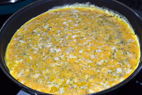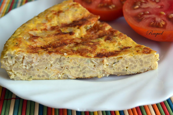 Pues aprovechando un resto que me sobro del día anterior, además le puse un poco de pavo a las finas hierbas que tenia en el frigorífico y un poco de una bolsa de mezcla de quesos que también había, así que surgió esta tortilla, ésto es una receta de aprovechamiento en toda regla, no os parece? y encima ha de deciros que me sorprendió, porque estaba mas rica de lo que me esperaba, con deciros que a mi hija, que ya os he dicho alguna vez es un poco "pisquismitis" con las comidas, esta le gusto!! y eso a mi no sabéis la ilusión que me hace.