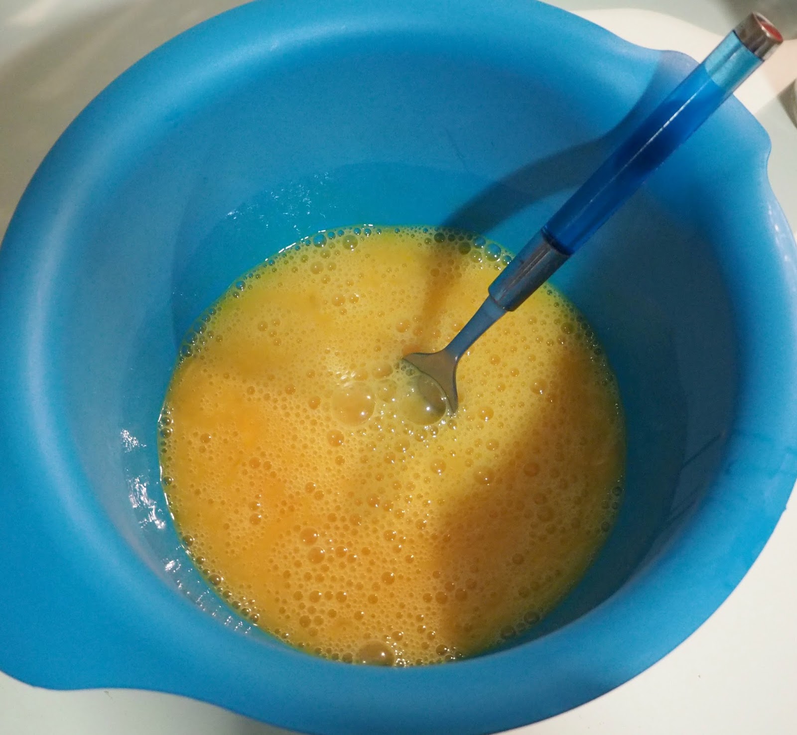 - Ponemos a escurrir el atún y mientras batimos los huevos con un poco de sal.