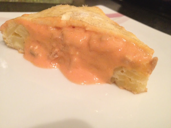Hay a quien no le hace mucha gracia la salsa rosa , siempre podremos distribuirla a gusto por la tortilla , pero si eres un gran catador de salsa rosa como yo , siempre tendremos a mano el recipiente en el que hemos elaborado la salsa para pringar un poco más la tortilla , como podéis ver en la siguiente imagen :