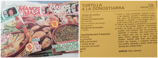 Yo he elegido una receta de las revistas que se editaban,sobre este programa, es sencilla, pero os aseguro que es exquisita esta receta. TORTILLA A LA DONOSTIARRA