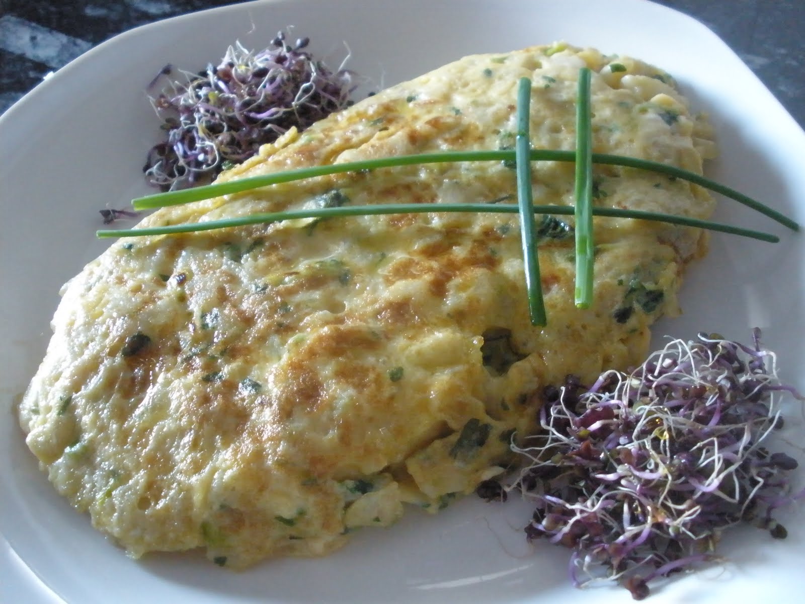 INGREDIENTES4 Huevos, bacalao fresco troceado( yo he utilizado bacalao desmigao el cual lo he desalado previamente), media cebolla mediana, unos ajetes frescos, pimienta, perejil.Germinados de lombarda y cebollino
