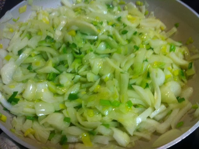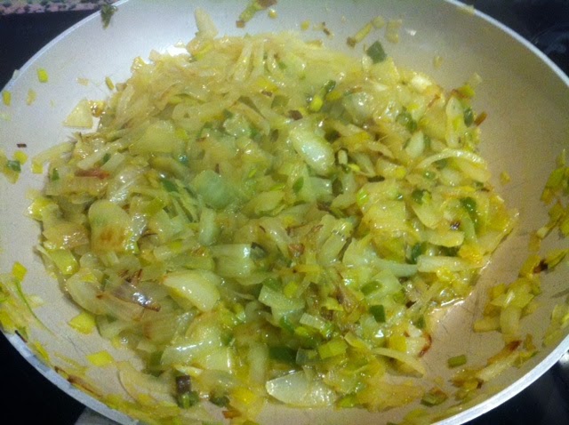Para mi gusto, el secreto de una buena tortilla de bacalao es no tener prisa en pochar la verdura, esto le dará un toque dulzón buenísimo.