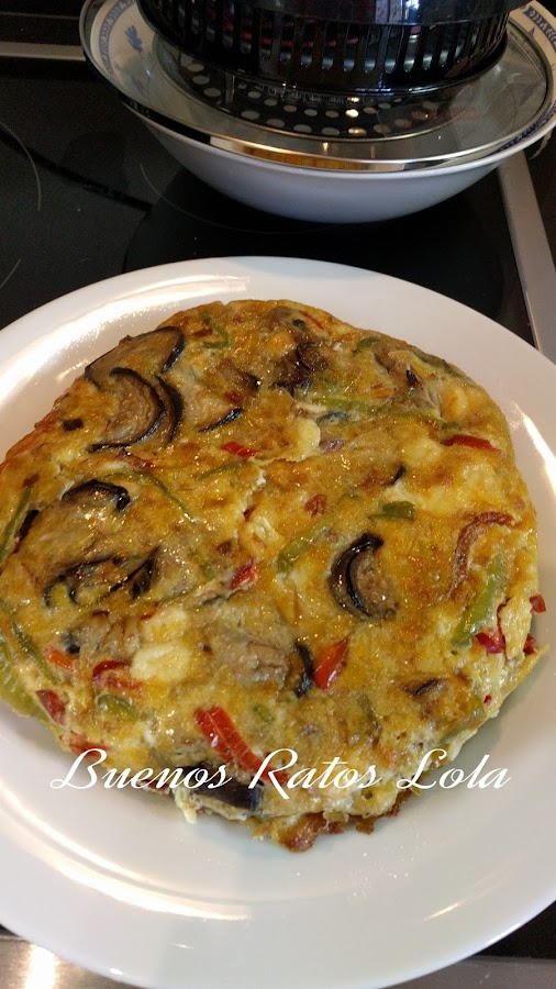 Recién llegada mi cubeta y tenía que estrenarla con algo original. Los guisos, menestras, legumbres y arroces, está claro que quedarán estupendamente. Yo la tenía que probar en una receta que realmente no está pensada para cocinar de manera lenta. El resultado buenísimo; una tortilla muy jugosa, más parecida a una quiché que a una tortilla y muyyy suave al paladar. El único inconveniente es que se tarda mínimo una hora en cocinarla. La cocina lenta con temperaturas más bajas precisa más tiempo.