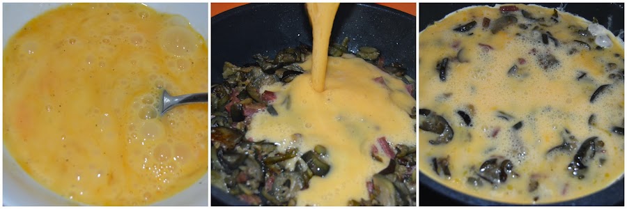 1/2 Kilo de berenjenas pequeñas (baby), 5-6 huevos medianos, Salchichón ahumado, Sal, Pimienta y Aceite de Oliva Virgen Extra.