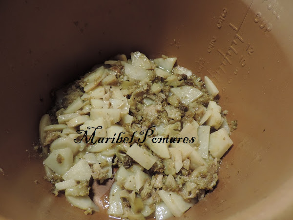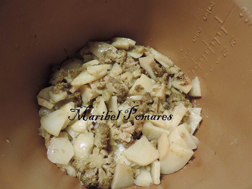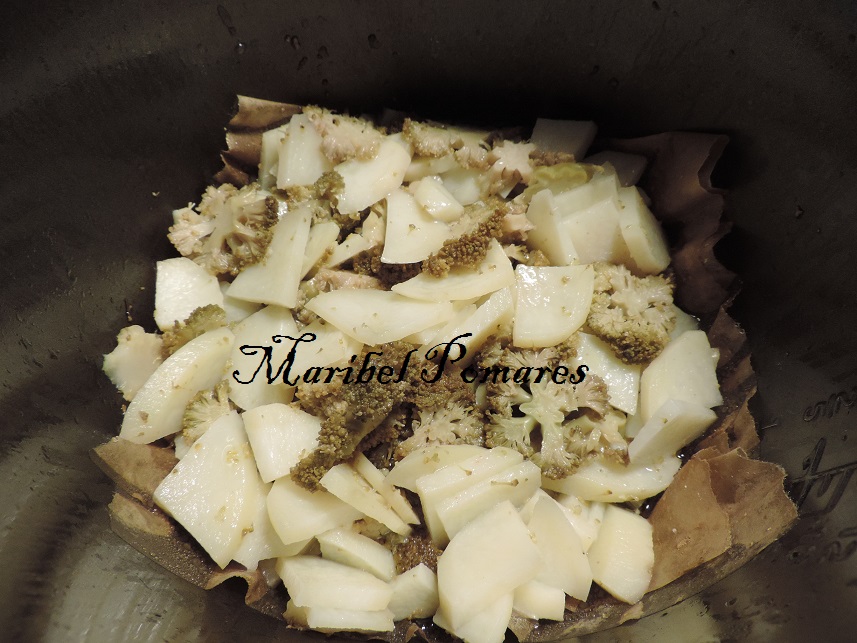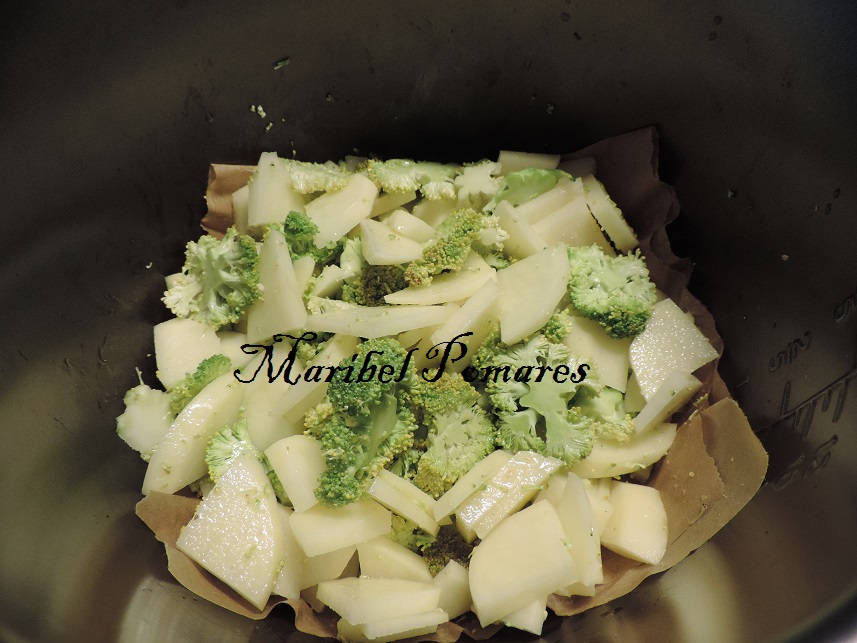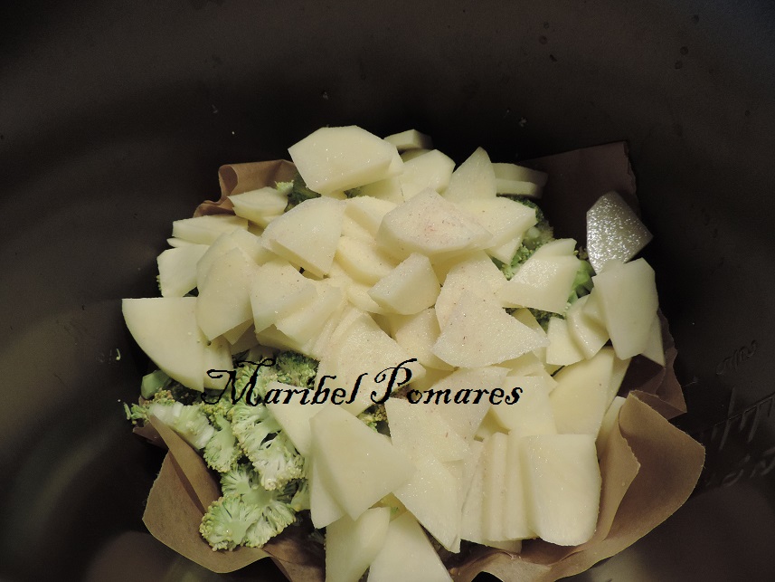 Como he puesto las patatas y el brocoli en una cubeta que se pegaba, las he cambiado a la cubeta que tengo que no se pega.