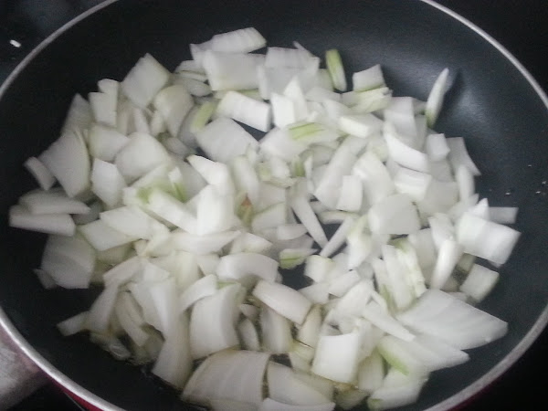 1. - En primer lugar pelamos y cortamos la cebolla y la ponemos a pochar en una sartén hasta que se ponga transparente.