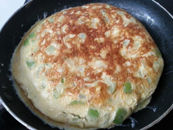 8. - Cuando veamos que ya está bien cuajado los borde, le damos la vuelta a la tortilla, y dejamos de nuevo que vuelva a cuajar.