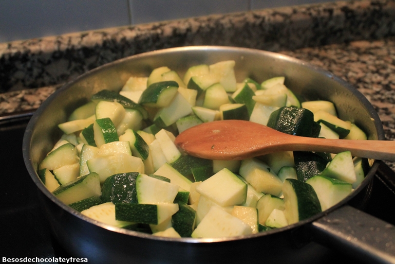 Finely cut garlic and brown them in a pan with oil. Then we incorporate zucchini and let it slowly pass.