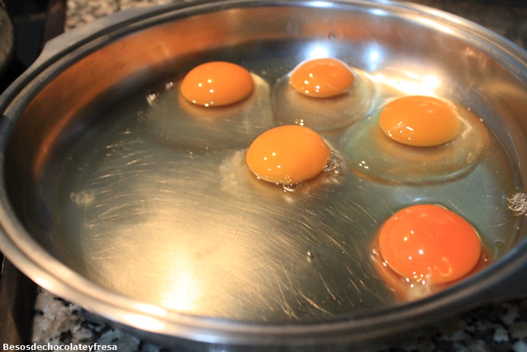 En otro bol, batimos los huevos con un poco de leche y levadura (truco para que quede más gordita y esponjosa).