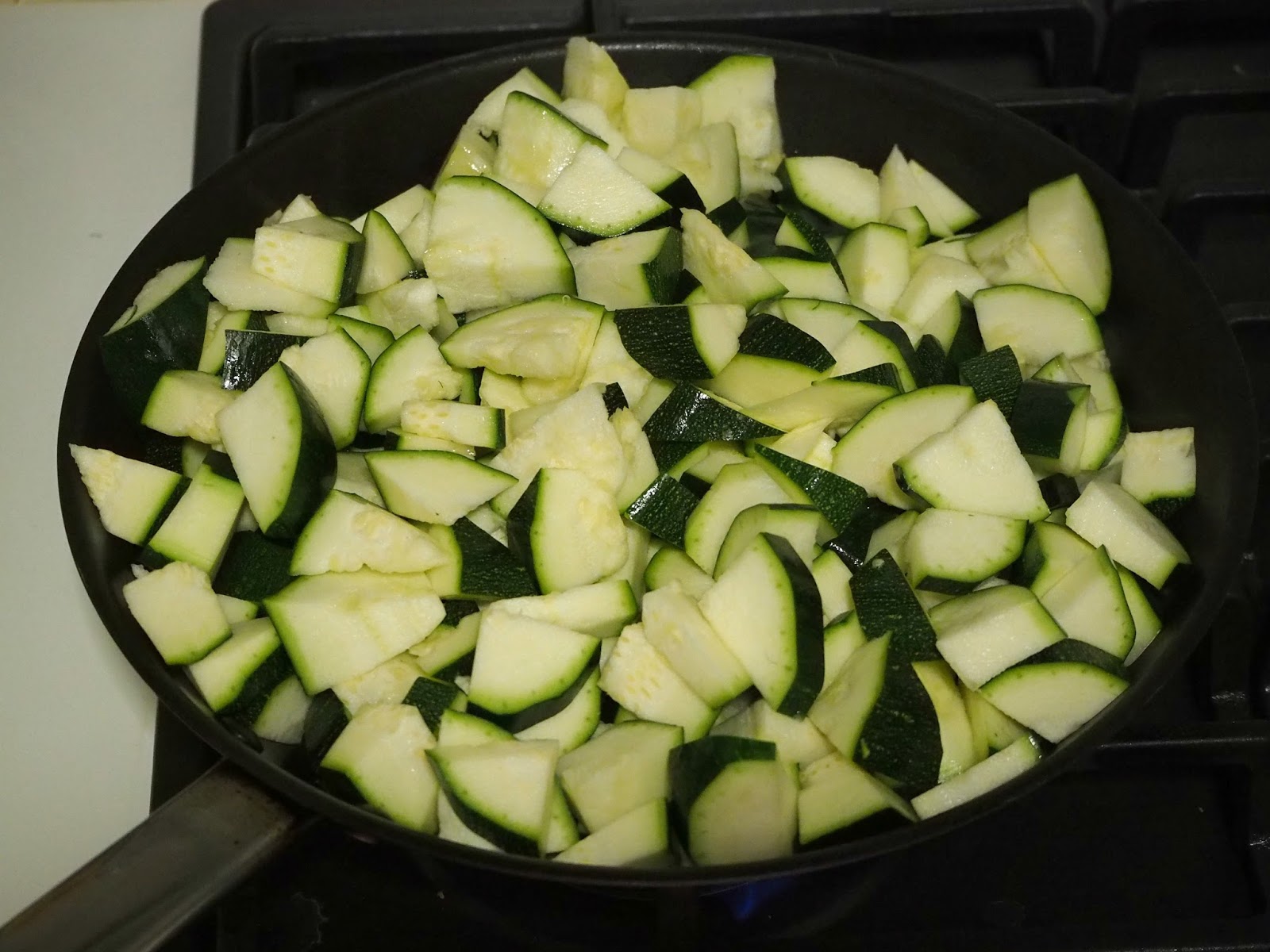 - En una sartén calentamos un poquito de aceite y ponemos el calabacín, salado al gusto a cocinar. Dejamos que se vaya haciendo tranquilamente, removiendo de vez en cuando.