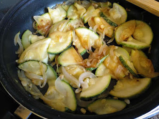 Cuando tengamos lista la cebolla, agregamos el calabacín y seguimos cocinando a fuego bajo revolviendo de vez en cuando.