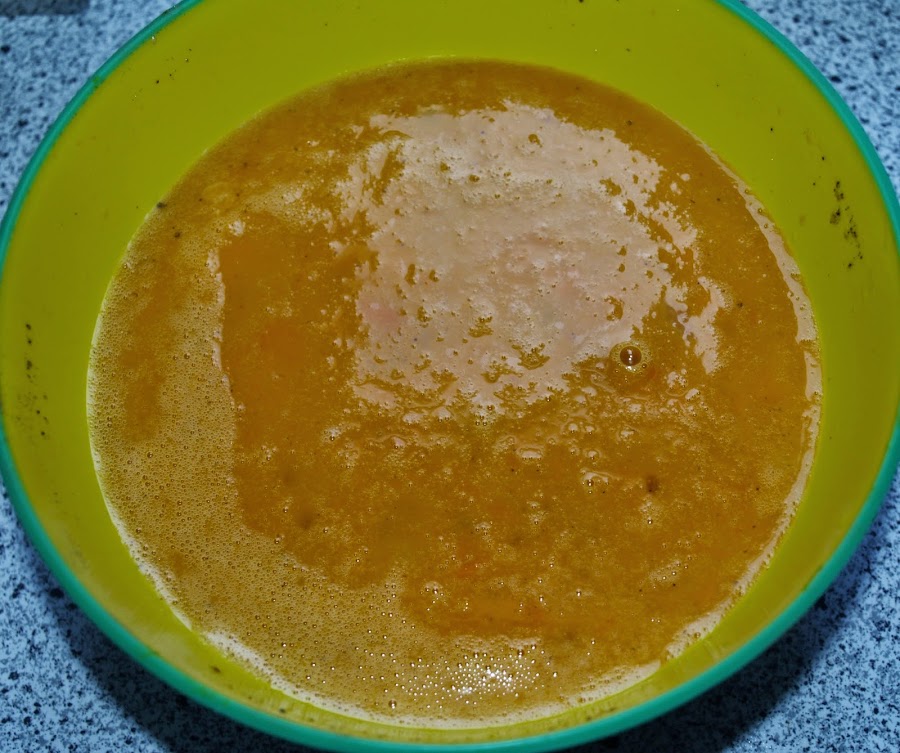 - En un bol, machacamos la calabaza hasta que quede como una masa o puré espeso y la añadimos al la mezcla anterior al gusto. Yo puse bastante porque me encanta y porque tampoco sabía muy bien cuánta poner. Y antes la duda: mucha! :)