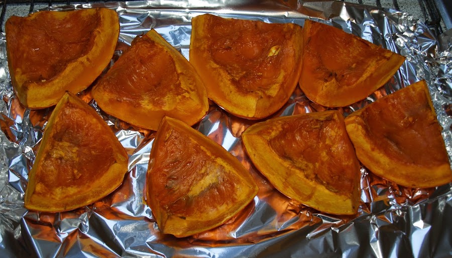 Calabaza asada (totalmente a ojo. Bastante) (Usé la variedad Hokkaido - foto)
