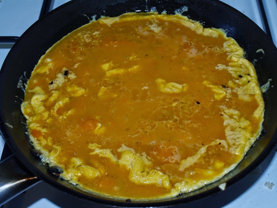 Las cantidades dependerán obviamente de cuántos comensales seáis. Yo puse mucho "a ojo", ya que era la primera vez que hacía una tortilla así. Perdonadme por la inexactitud en las cantidades de algunos de los ingredientes.
