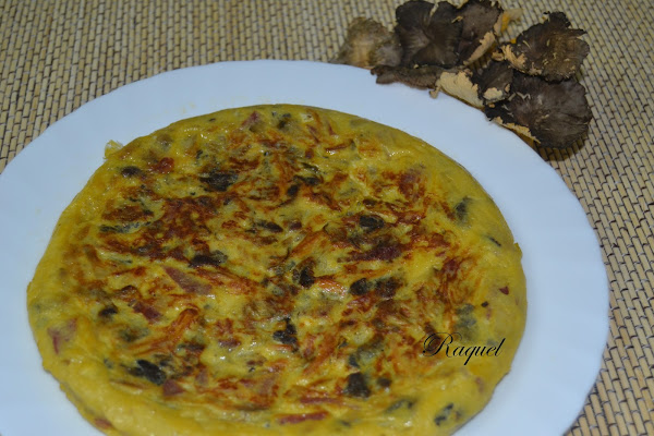 Echamos las setas y demás lo mezclamos bien y hacemos la tortilla por los dos lados.