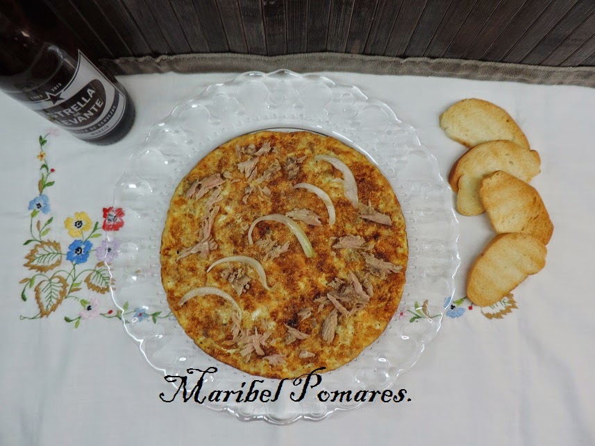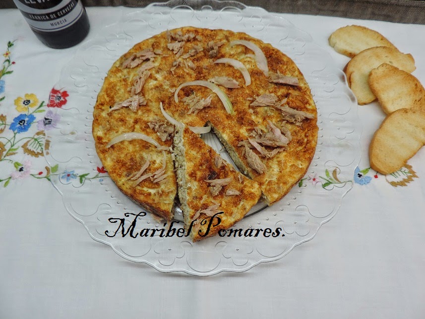 Le ponemos por encima para decorar trozos de cebolla y atún.