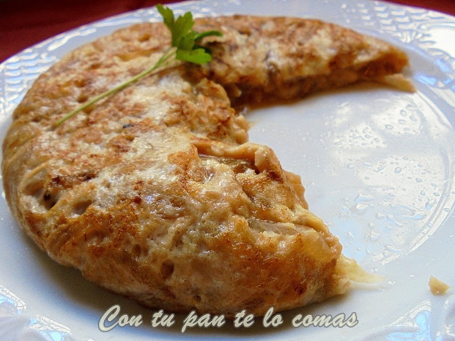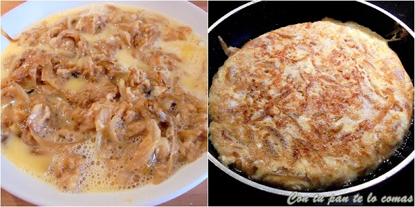 Como verás los ingredientes principales son cebollas y huevos, más sencillo imposible. A mi me gusta más esta variedad de añadirle un poco de pan empapado en leche que le da un poco más de consistencia, pero tampoco es absolutamente necesario.