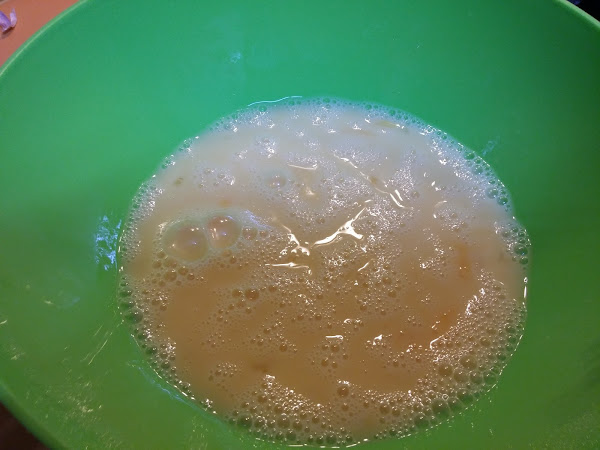 Batimos los huevos en una fuente. Añadimos una pizca de sal.