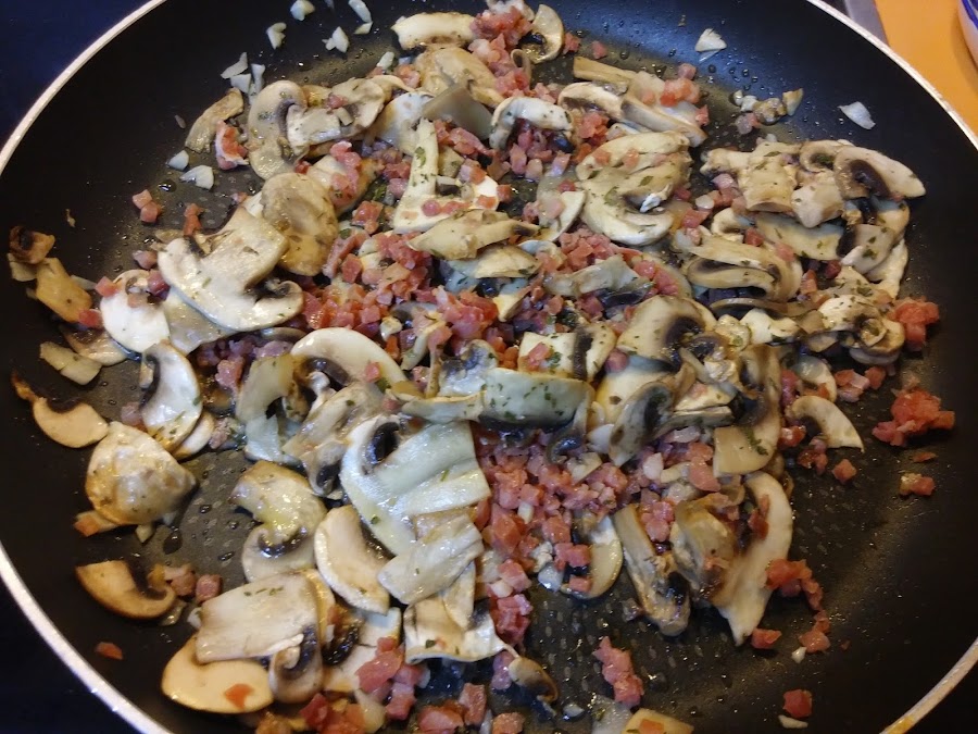 Echamos el sofrito de champiñones. Mezclamos bien.