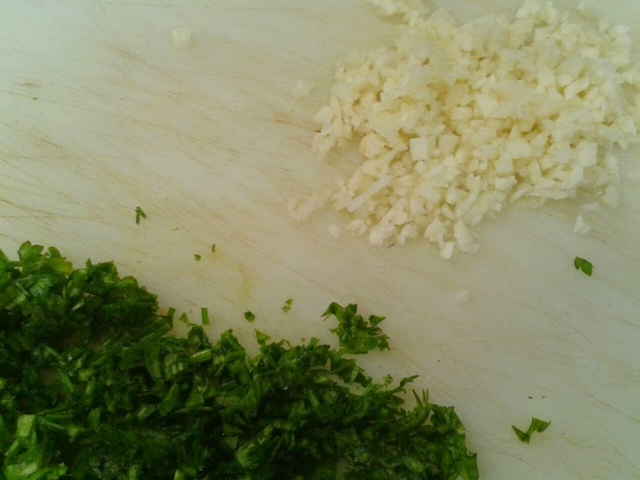 Picamos muy finamente los dientes de ajo y el perejil.